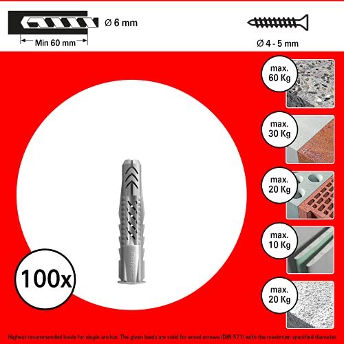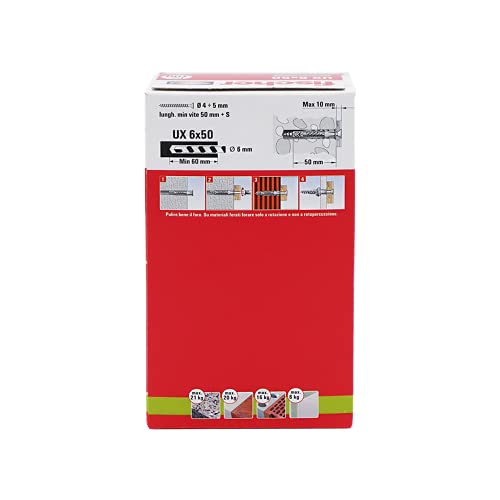 Fischer 100 Tasselli UX, 6 x 50 mm, per Muro pieno, Mattone Forato, Cartongesso, 542452
