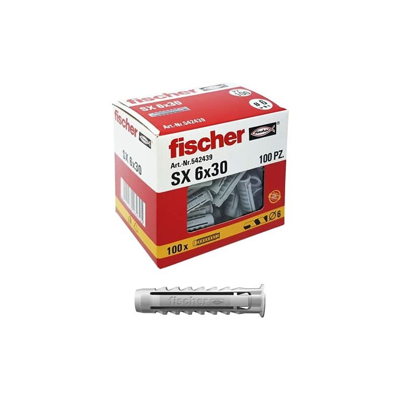 Fischer 100 Tasselli SX, 6 x 30 mm, per Muro pieno e Mattone Forato, 542439 6 x 30 mmSize: 6 x 30 mm;
