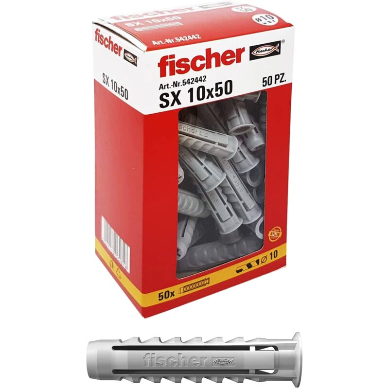 Fischer 50 Tasselli SX, 10 x 50 mm, per Muro pieno e Mattone Forato, 542442 10 x 50 mmSize: 10 x 50 mm;