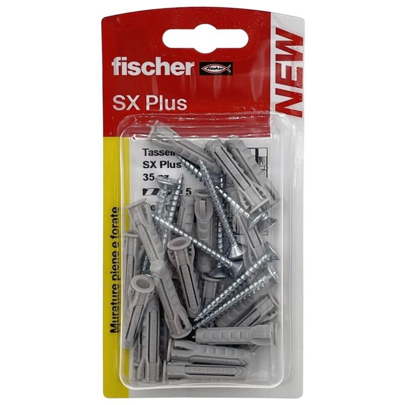 Tasselli Fischer SX Plus SK Tassello in nylon con vite truciolare testa svasata piana impronta Pozidrive, con espansione a 4 settori e alette laterali per il prefissaggio della vite. Idoneo per installazioni passanti e non passanti. Le nervature antirotazione impediscono la torsione del tassello nel foro e assicurano una presa sicura sul supporto. Applicazione su calcestruzzo, mattone pieno, semipieno, solai in latero-cemento, pietra naturale, pannello pieno in gesso. SX Plus 8 SK - L. 40 mm. - Blister 10 pz.