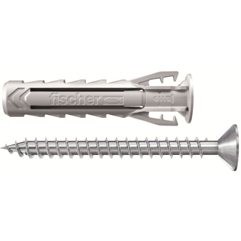 Fischer tassello sx plus 10 s 25 pz. lunghezza mm. 50 In nylon, con espansioni a 4 settori, alette laterali per il pre-fissaggio della vite, sotto-testa studiato per prevenire danni a piastrelle e intonaco, vite per truciolare in acciaio zincocromato, impronta pozidrive TSP, per calcestruzzo e muratura. Indicato per il fissaggio di lampadari, mensole, quadri elettrici, ecc. Articolo produttore: 567623