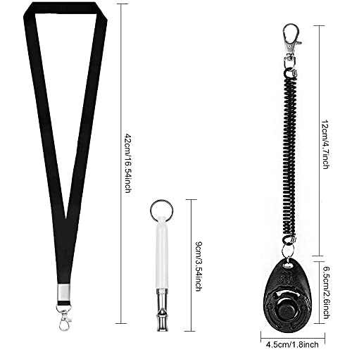 La confezione include: 2 fischietti per cani con cordino e un clicker nero per cani, sufficienti per l'uso quotidiano e le esigenze di sostituzione.