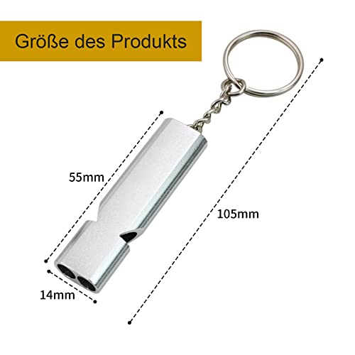 【Pratico e creativo】 Il fischietto di emergenza è dotato di una catena portachiavi adatta per essere appeso allo zaino, alla cintura o alla chiave, e ha una superficie liscia in alluminio anodizzato per un aspetto elegante e di alta qualità. Comodo e pratico.