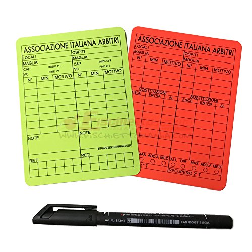 Fischiettomania Cartellini Arbitro riscrivibili 12x9 cm per Calcio a 11 (a 7 sostituzioni) + Pennarello