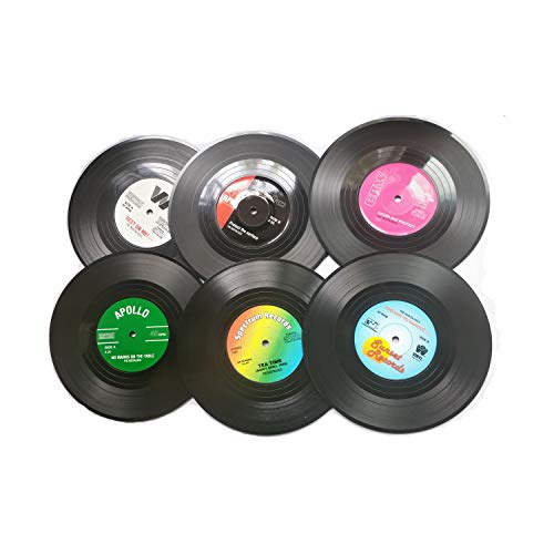 Fiseven 6Pcs vinile sottobicchiere record tazza portabevande tappetino stoviglie tovaglietta tazza di tè stuoia