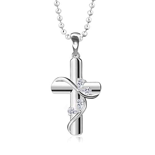 CIONDOLO: Pendente a croce in argento sterling con quattro pietre di zirconia. Il regalo ideale in occasione di comunione, cresima, battesimo o anche compleanno.