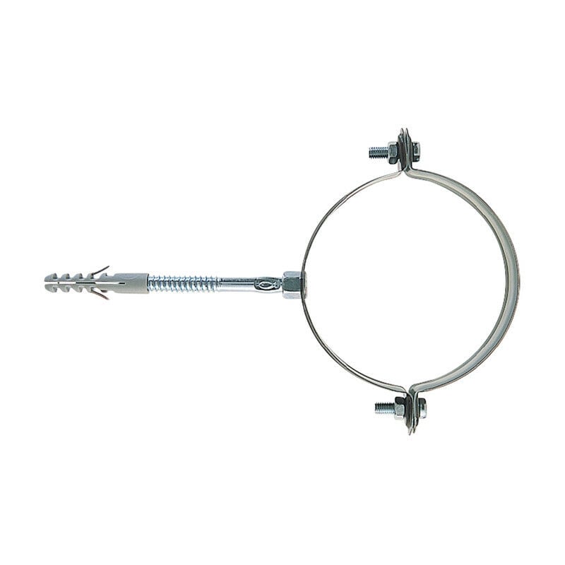 COLLARE FISCHER SCP 120 TONDO Misura: Ø 120 mm. Finitura: Zincato In acciaio zincato - Fissaggio di tubi per pluviali - Completo di vite M8 e tassello da Ø 10 mm.