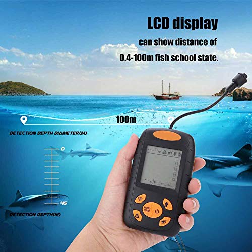 RILEVATORE DI PESCA - Con display LCD, mostrer¡§¡è una distanza di 0,4-100 m stato di scuola di pesce. Con sensore rotondo, rilevamento accurato, stabilit¡§¡è del segnale, aiuta a identificare gli obiettivi di pesce.