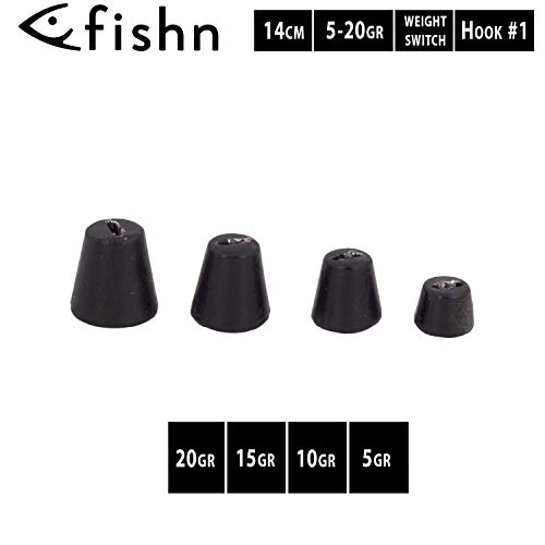 FISHN Screw in Pike Systems - Shallow Rig con Pesi intercambiabili 5-20g per Esche morbide Fino a 25cm con ami Mustad Ultra affilati (Switch Black)