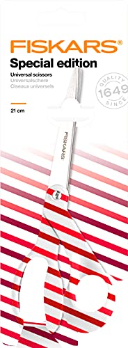Fiskars Forbici Universali, Lunghezza Totale: 21 cm, Acciaio di qualità/Plastica, Inspiration, Motivo bastoncino di zucchero, 1063035