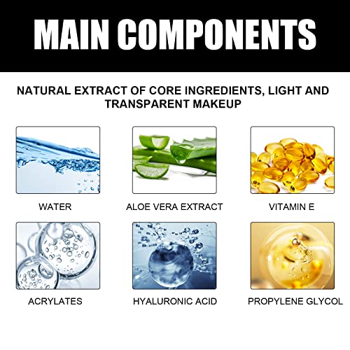 Ingredienti Naturali Sicuri: Lo spray trucco viso è composto da estratti naturali, contenenti una varietà di essenza vegetale. I suoi componenti principali sono acqua, estratto di aloe vera, vitamine, esteri acrilici, acido ialuronico, glicole propilenico, ecc. Leggero e non irritante, adatto alla pelle.