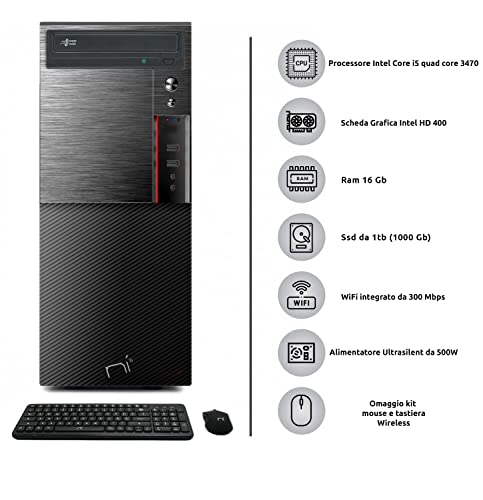 Cpu Intel core i5 quad-core, Ram ddr3 16gb, Ssd 1 Tb, Masterizzatore DVD±R, Wifi 300 mbps per fibra
