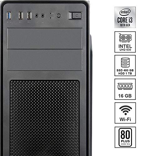 Pc Fisso DILC Business 3 Intel i3-10100 4 Core 3.60 ghz Ram 16 gb Ssd 480 gb Hard Disk 1 tb WiFi 300 mbps Masterizzatore Alimentatore 80+ Licenza Windows 10 PRO