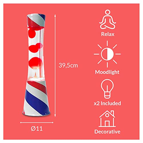 FISURA - Lampada lava "Barber shop". Base Barber, liquido trasparente e lava rossa. Lampada ad effetto rilassante. Con lampadina di ricambio. 11 cm x 11cm x 39,5 cm.