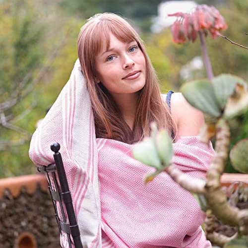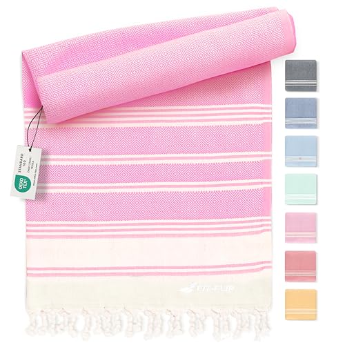 Fit-Flip Telo hammam - Telo mare cotone 100% riciclato - asciugatura rapida telo mare fouta, pestemal asciugamano hammam ideale come telo sauna hammam e sarong - Rosa - 100x200cm Diamond