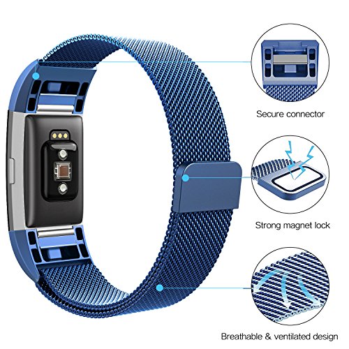 Fitbit Charge 2 Cinturino, Swees chiusura magnetica Milanese Loop in acciaio inox cinturino bracciale per Fitbit Charge 2 (5.5"-8.5") - Blu