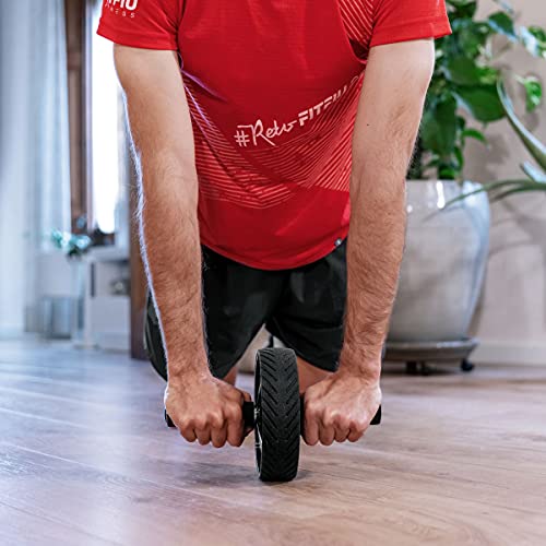 FITFIU Fitness ABWHEEL-180 - Ab roller con ruota da 15cm, maniglie imbottite e base scorrevole, Ab roller con tappetino, per rafforzare il core e gli addominali, nero e rosso