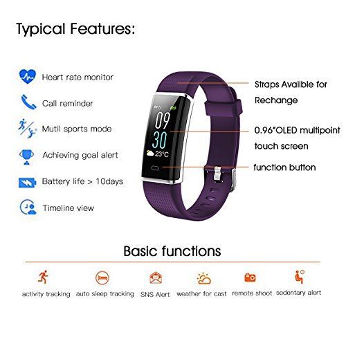 Fitness Tracker, Orologio Fitness Activity Tracker Fitness Bracciale Impermeabile IP67 cardiofrequenzimetro da polso Smart Watch per Uomo Donna Monitoraggio del Contapassi/Contacalorie/Monitor (viola)
