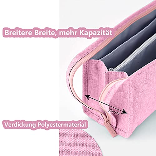 X SIM FITNESSX Astuccio portapenne, con maniglia per il trasporto, per ragazze e ragazze, grande capacità, astuccio per matite e cosmetici, per scuola e ufficio (rosa)