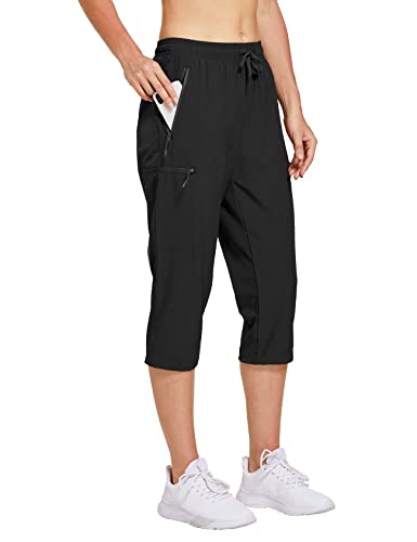 FitsT4 - Pantaloni da trekking da donna, leggeri, ad asciugatura rapida, con coulisse, resistenti all'acqua, tasche con cerniera, 02-capri-nero, M