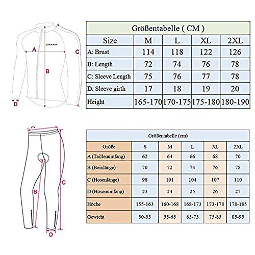 Fitsund, abbigliamento per ciclismo invernale termico da uomo, giacca a maniche lunghe e pantaloni con seduta imbottita 3D, Uomo, Blau, XXL