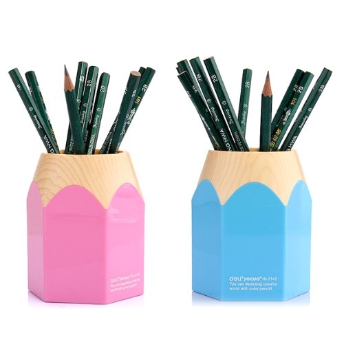 FitTek Portapenne Porta Matite in Legno Forma a Matita Cancelleria