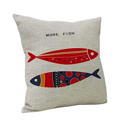 Fittingran Federa casa, Pesce Stampato tiro federe Decor Lino Creative Square Cuscino Copertina 17,72'' (F)