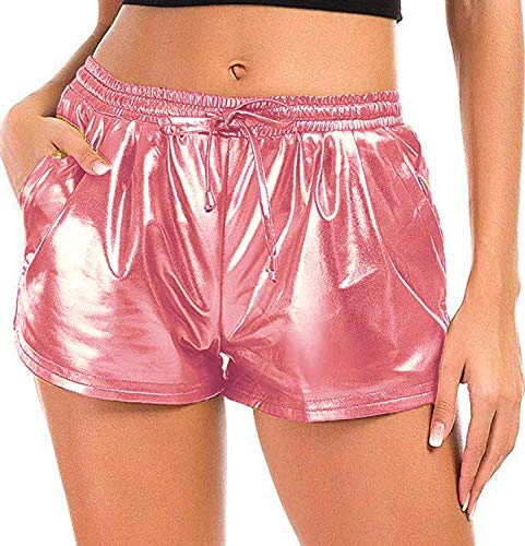 FITTOO Pantaloncini Sportivi Casual Donna Elastico Yoga Legging Pigiami Corti per Jogging Fitness Esecuzione Palestra Spiaggia, XL, Rosa Tasca