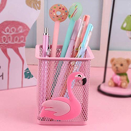 Fittoway Confezione da 2 portapenne in metallo, multifunzione, portapenne, portapenne, portapenne, organizer da scrivania, per casa, ufficio, regalo di compleanno (fenicottero)