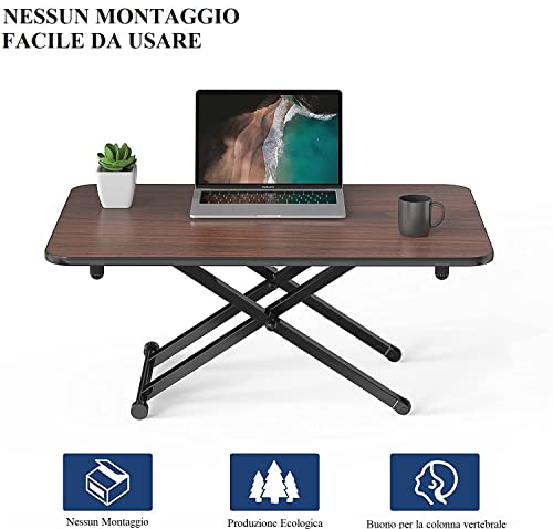 FITUEYES Convertitore da Scrivania In Piedi 31''/78,5 cm Standing Desk Converter per Doppio Monitor Altezza Regolabile per PC, Laptop (Marrone)