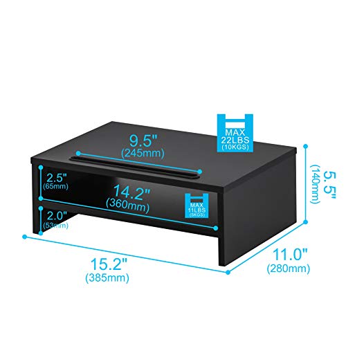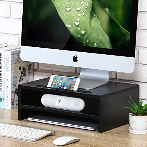 FITUEYES Supporto Monitor, 2 Livelli, Supporto per Computer Portatile, Supporto da Scrivania, Monitor Raiser, in Legno, con Slot per telefoni o tablet, Partata Max 10kg, Nero, 38,5x28x14cm, DT203801WB