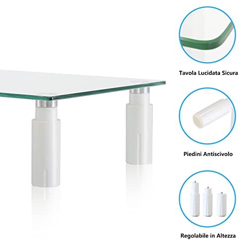 【DETTAGLI TECNICI】Dimensione: 38.5cm(L) x 24cm(P) x 8/10.5/13cm(H). Vetro trasparente temperato di 6 mm di spessore, capacità massima: 35 kg.
