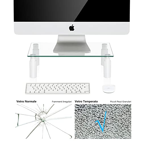 FITUEYES Supporto Monitor Supporto per Monitor in Vetro Temperato, Altezza Regolabile 38.5 x 24 x 8/10.5/13cm (Chiaro) DT103806GC