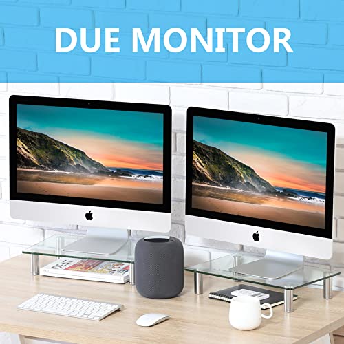 FITUEYES Supporto Monitor Supporto per Monitor in Vetro Temperato, Altezza Regolabile 2 Pezzi 38.5 x 24 x 7.5cm (Chiaro) DT103803GC