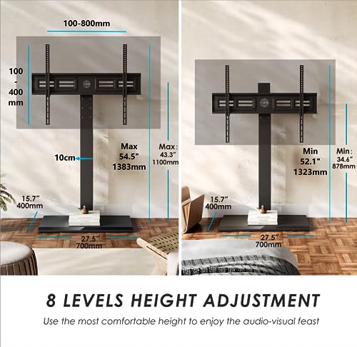 【70° Girevole e 12 Altezza Regolabile】Il porta tv può ruotare di 70° a sinistra ea destra e dispone di 12 livelli altezza regolazione da 1455-1133 mm per un angolo di visione ottimale.