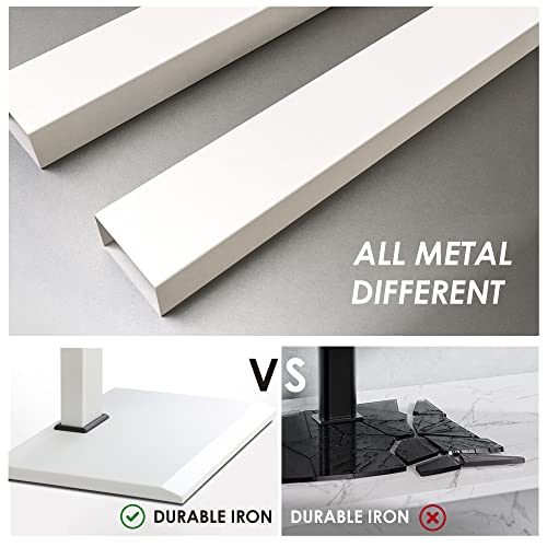【Minimalista e Elegante Supporto TV】- Un buon sostituto per la tua vecchia staffa da parete. Niente più fori sul muro. La finitura bianca elegante ha il suo gusto unico. Puoi mettere i supporto TV pavimento in un angolo o sotto il tuo mobile TV o l'estremità del letto.