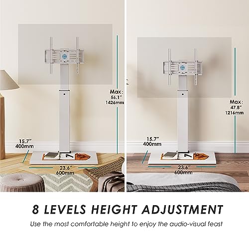 FITUEYES Supporto TV da Pavimento 1.43m con 25mm Ferro Base per 27-65 Pollici, 60° Girevole e 8 Altezza Regolabile Porta TV da Terra, Max VESA 400x400mm Portata 40kg (Bianco)