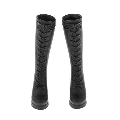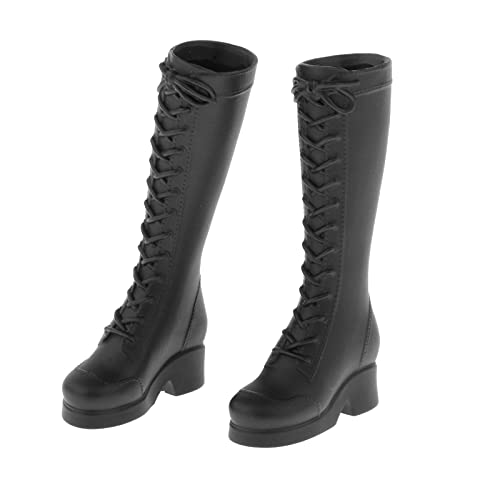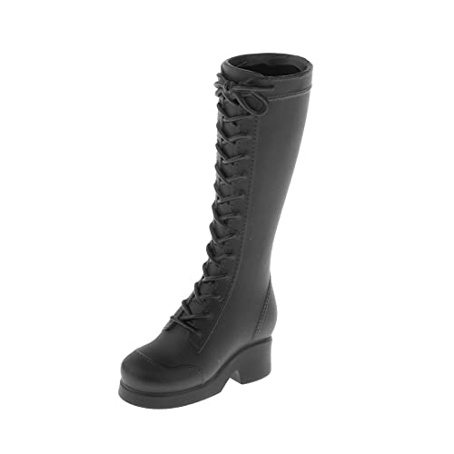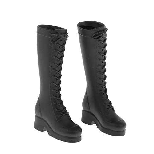 F Fityle Accessori per Bambole con Figure Femminili in Scala 1/6, Stivali con Tacco Alto Stringati per Action Figure da 12 Pollici - Nero Opaco