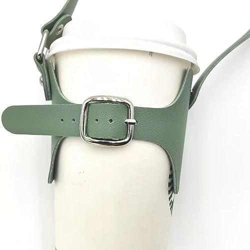 F Fityle Borsa portaborraccia con manico per bottiglia d'acqua Borsa portabicchiere in pelle PU portatile multiuso regolabile per passeggiate in bicicletta, VERDE