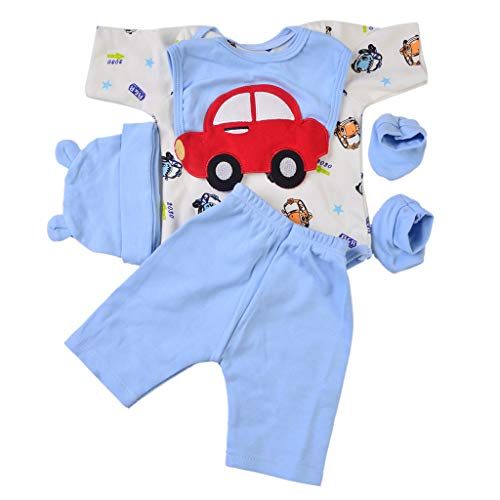 5pcs Bella appena nata baby boy vestiti della bambola set modello di auto manica corta Tuta, pantaloni rosa, bavaglino, cappello e calzini vestire accessori