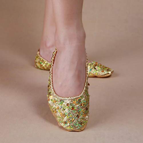 F Fityle 2 Pezzi Scarpe Prestazione Suole Morbide Antiscivolo Accessorio Danza Ventre Per Ragazza Donne - Dorato, S