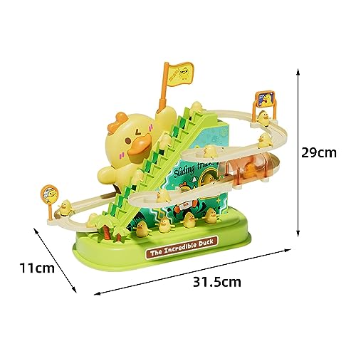 * PICCOLE ANATRE GIOCATTOLI SCALE CON MUSICA: i giocattoli per scivoli Electric Tracks vengono forniti con musica e le anatre saliranno con la musica e poi scivoleranno giù dallo scivolo.