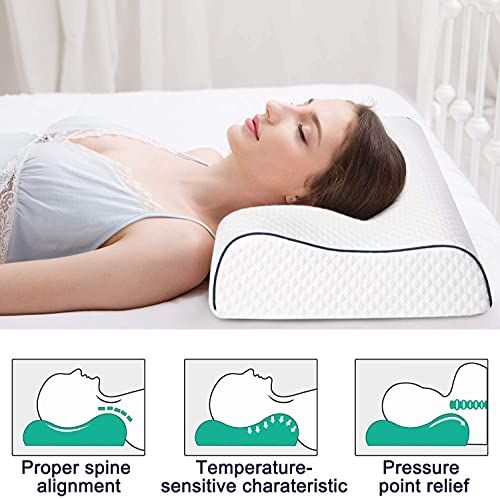 【Design ergonomico】 - le superfici curve alte e basse del cuscino per il collo in memory foam su entrambe le estremità offrono una vestibilità personalizzata per soddisfare i diversi dormienti, consentendo una respirazione più calma e un sonno confortevole.