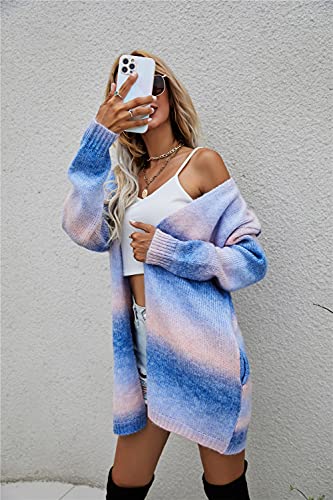 FIUWAND Women Maglione Donna Elegante Cardigan Lungo Aperto con 2 Tasche Maglione Pendenza Invernale (Blu, L)