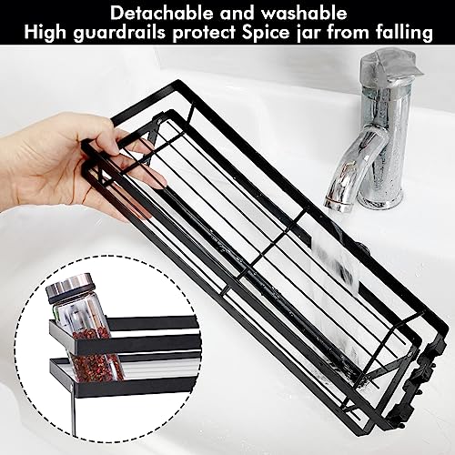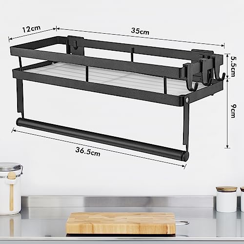 FIVAVA Porta Spezie per Cucina, PortaSpezie, da appendere, Portaspezie Salvaspazio, porta spezie con porta rotolo da cucina & 4 ganci rimovibili, Organizer Cucina, 35 cm Nero