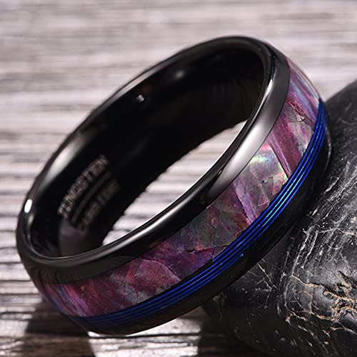 Fivavo 8mm Band Ring Tungsteno Nero Mens Womens Anello di fidanzamento Fede nuziale Cupola Viola Shell Blue Guitar String Inlay Friendship Ring Size 14.5