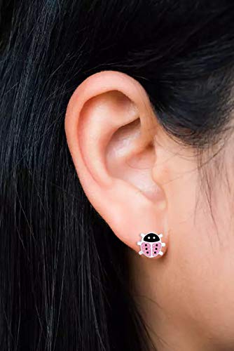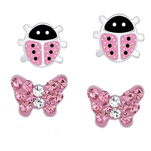 FIVE-D 2 x orecchini per bambini con coccinella e farfalla in argento Sterling 925 con custodia