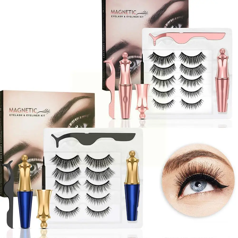 Five Pairs Of Magnetic False Eyelashes Set Liquid Eyeliner Magnetic Set Set False Eyelashes Magnetic False Eyelashes B7M0
