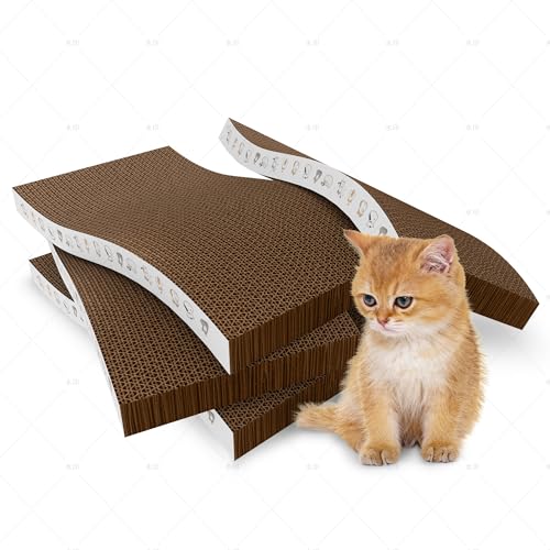 Fivean Tiragraffi per gatti, 4 pezzi, Tipo S tiragraffi gatto, Tiragraffi Cartone, Tiragraffi per Gatti Adulti Piccolo. Erba Gatta Inclusa. 43 x 21 x 3.5 cm.