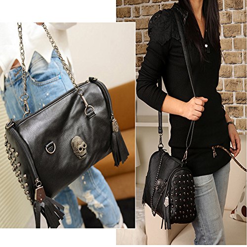 FiveloveTwo Borsa da Donna Pelle PU Retro Cranio Borse a Tracolla Spalla Mano Sacchetto Zainetto Tote Nero
